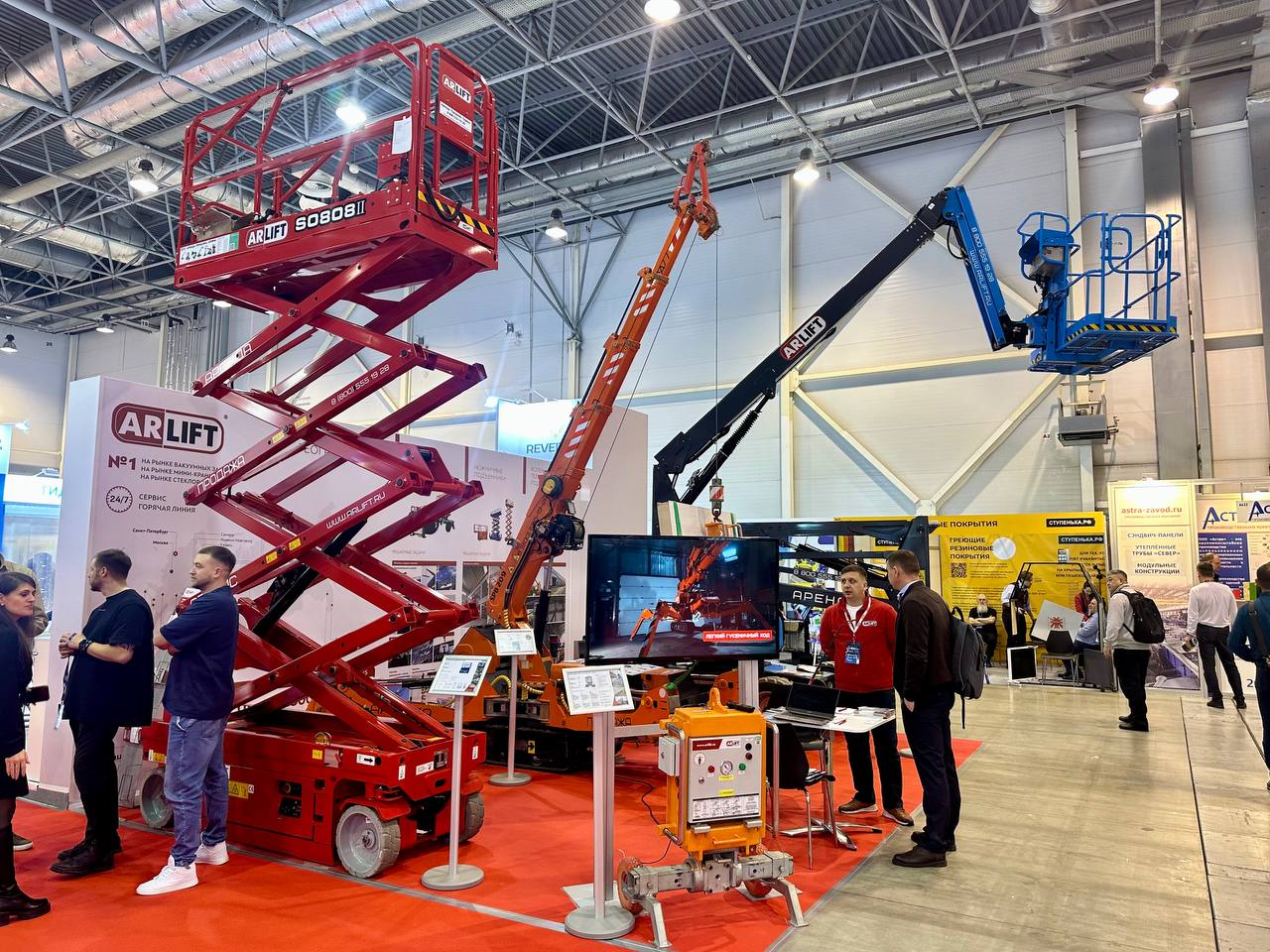 Звездой выставки стал мини-кран Арлифт SPB209 — самый маленький кран в линейке компании. Компактный и маневренный SPB209 легко проходит через дверные проемы и помещается в грузовой лифт. При этом может поднимать груз до 990 кг. Незаменимый помощник на стройплощадках.