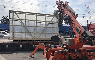 Компания АРЛИФТ произвела монтаж стеклопакетов внутри бизнес-центра «Добролюбов» в Петроградском районе Санкт-Петербурга с помощью мини-крана Jekko SPX 527CDH и вакуумного захвата ARLIFTER GS-750