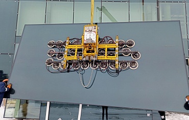 Стекла размером 3 на 6 метров смонтировали с помощью вакуумного захвата ARLIFT-F/R-1500. Монтаж проходил на высоте до 40 метров
