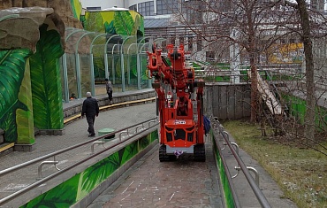 Техника Арлифт помогла произвести монтаж стеклопакетов на ограниченном пространстве Московского государственного зоологического парка.
