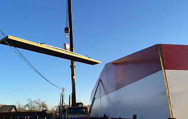 Манипулятор и вакуумный захват Arlifter GS-350 помогли при строительстве ангара из сэндвич-панелей.