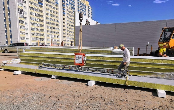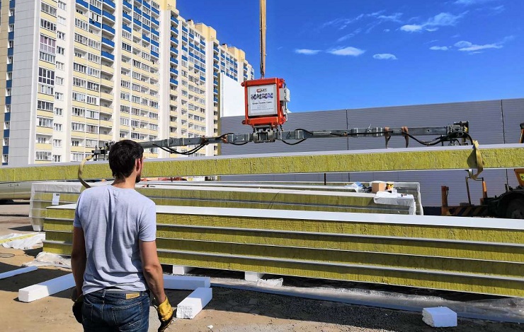 К тому же, неоспоримыми плюсами конструкций из сэндвич-панелей можно назвать низкую стоимость, энергоэффективность и сжатые сроки строительства. Чтобы сохранить все преимущества сооружений подобного типа, монтаж сэндвич-панелей лучше всего производить профессиональным оборудованием. Вакуумный захват ARLIFTER SP-4 – универсальный помощник при горизонтальном, вертикальном и кровельном монтаже сэндвич-панелей длиной до 26 метров.
