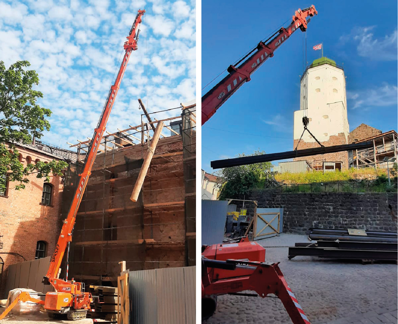 Выборг – уникальное место на карте России. Здесь можно встретить не только средневековые улочки, скальный пейзаж с карельскими соснами, но и единственный в стране рыцарский замок, основанный в 13 веке. Не удивительно, что для сохранения памятника на территории проводятся периодические реконструкции и профилактические работы. Смонтировать металлические балки помог мини-кран Арлифт SPX527CDH . На данный момент, благодаря своим компактным размерам, грузоподъемности, маневренности — это одна из самых востребованных моделей крана в России.