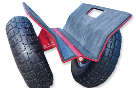 Самозажимные тележки, собственного производства компании Арлифт, предназначены для перевозки грузов весом до 250 кг, чаще используются в паре. Большие дутые колеса обеспечивают плавное движение, внутреннее покрытие - пористая резина, бережно относится к перевозимому материалу. Дополнительно можно приобрести вкладыши для транспортировки более тонкого материала.