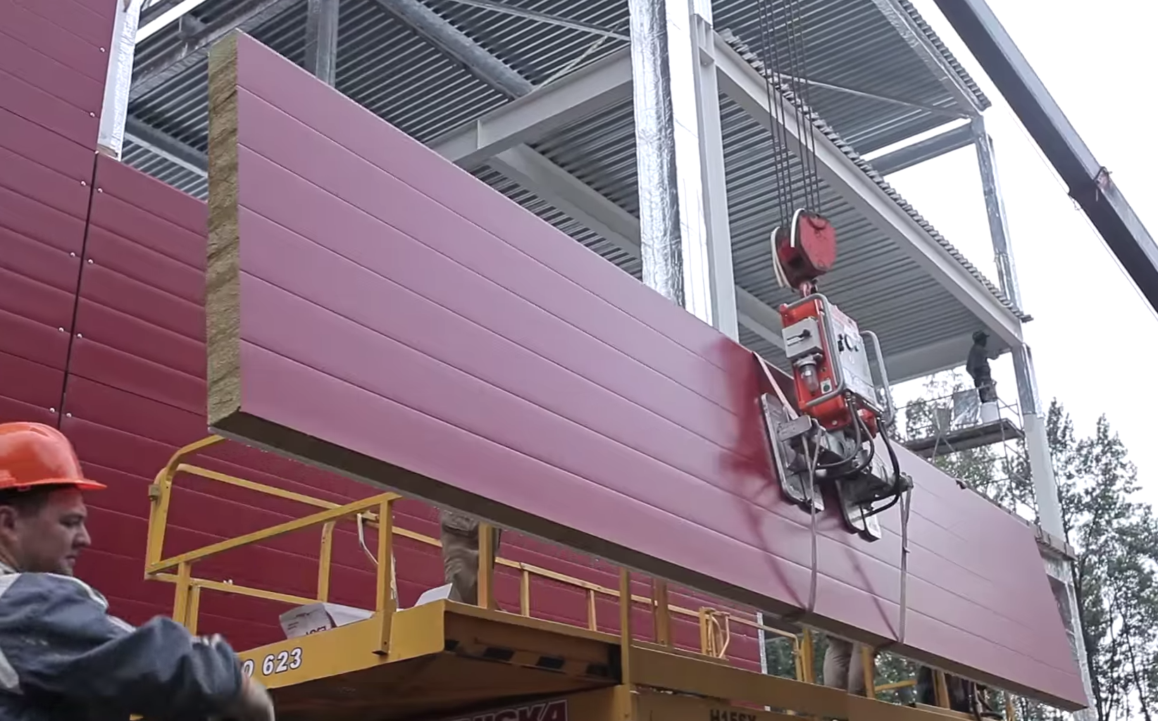 Наиболее эффективный и профессиональный способ монтажа стеновых и кровельных сэндвич панелей - вакуумные захваты Arlift! Единственный вакуумный захват в России, который гарантированно качественно монтирует сэндвич-панели во время осадков (монтаж в дождь и в снег). Температурный режим работы аппаратов от +50 до -25 °C. Встроенный влагоулавливатель. Используйте только проверенные инструменты для монтажа сэндвич-панелей на своем объекте!