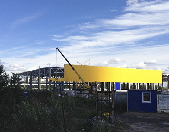 При возведении гипермаркета в Ленинградской области выполнялся монтаж стеновых панелей на территории общей площадью 4 621 квадратных метров.