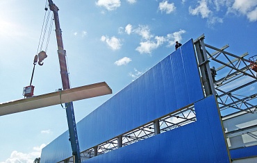 Вертикальный монтаж сэндвич-панелей 12 метров
