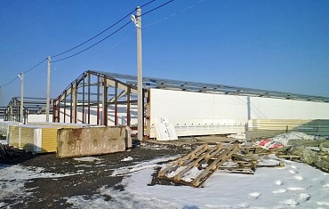 Складские помещения. Вертикальный монтаж стеновых панелей 7 метров
